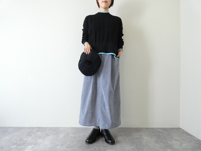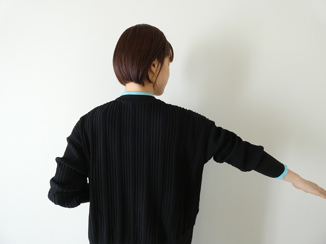 身幅もゆったりとしていてリラックス感がありつつも、縦ラインのリブ編みがすっきりとした印象を与えてくれます。