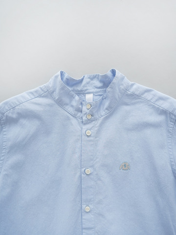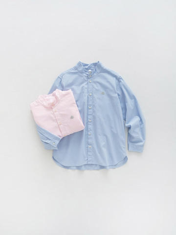 少し高さのあるハイカラーの首元が特徴のシャツ。洗いざらしのナチュラルな風合いで、カジュアルなアイテムとも相性良く着られます。きちんと感がありながら、デイリーコーデに馴染む一着に仕上がっています。