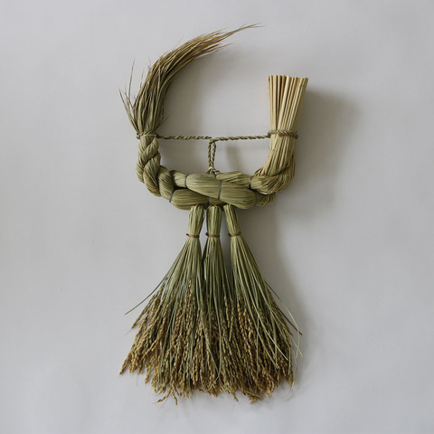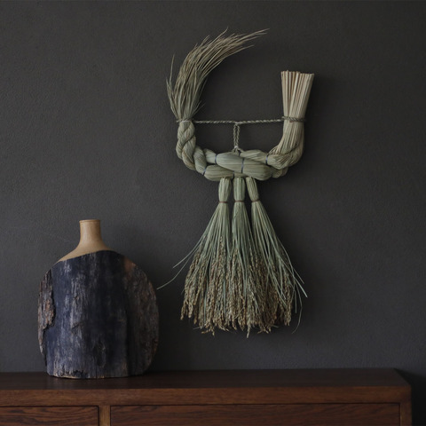 見惚れるほど細部まで美しく力強い注連縄。稲の香りや、長く飾ることで変化していく稲の色味も楽しんでいただけます。