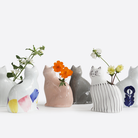 子猫の花器 フラワーベース 波佐見焼 / 『愛 編む 磁器猫』 ひがし ちか / プレゼント ギフト
