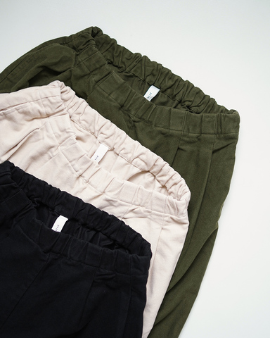 やわらかな甘撚りのコットン糸で織り上げたドビークロスに起毛を施し、ふっくらとした風合いと温かみを感じる一本。