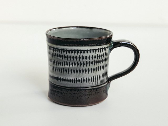 福岡県・小石原に工房を構える「鬼丸豊喜窯(おにまるとよきがま)」がつくる、素朴でどこか懐かしい風合いのマグカップです。