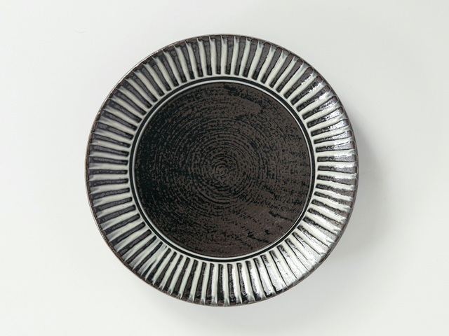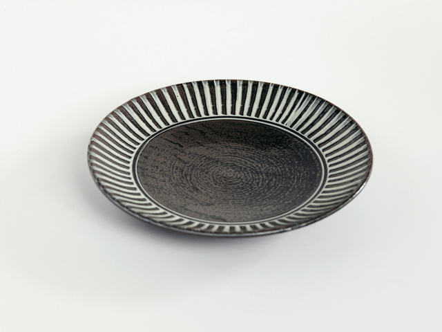 鬼丸豊喜窯|8寸皿(ハケ/内黒)小石原焼