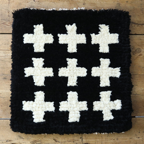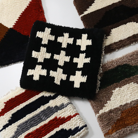 「敷く、民藝」と呼ばれる、倉敷ノッティング。40cm四方に織られた椅子敷。
