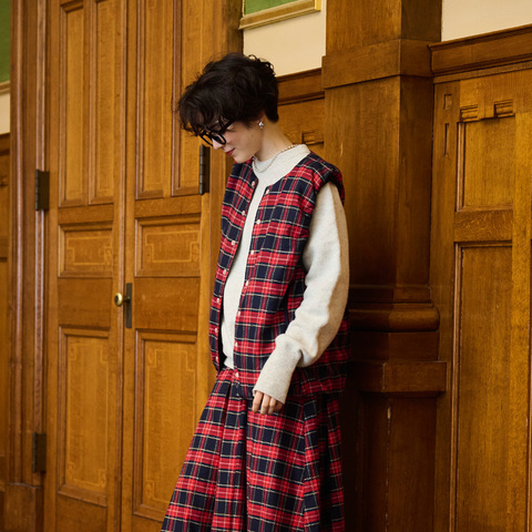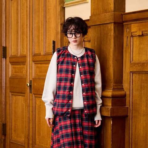ふんわり軽く、心まであたたかい、ロイヤルタータン パデットベストです。英国ムード漂うタータンチェックが、秋冬の装いに彩りを添えます。