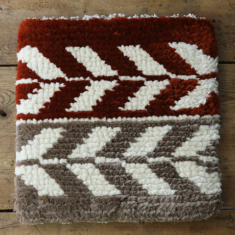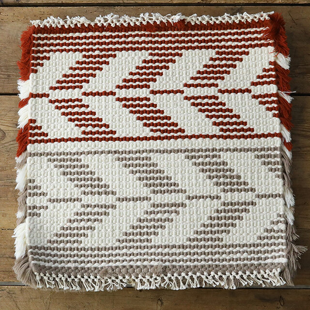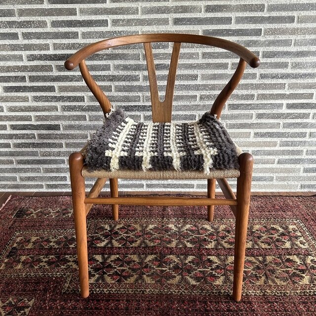 「敷く、民藝」と呼ばれる、倉敷ノッティング。40cm四方に織られた椅子敷。