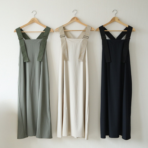アウトドア素材の生地で仕立てられたこちらのジャンパースカートは、とにかくその軽さにびっくり。