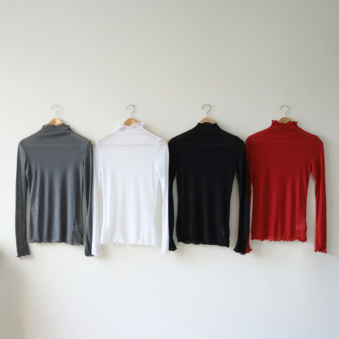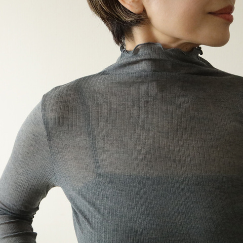 OMNES|大人の女性の重ね着シアーハイネック カットソー フリル 長袖Tシャツ トップス 重ね着
