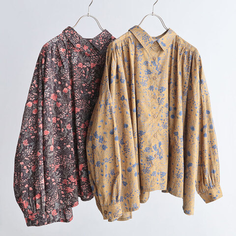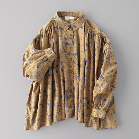 クラシカルなテイストのフラワープリントが大人可愛いギャザーシャツ