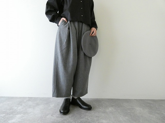 ストレッチのきいた微起毛素材を使用したタックワイドパンツです。温かみがありリラックス感のあるアイテムで、腰下位置からタックを施した動きのあるデザインです。