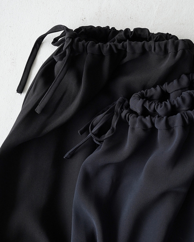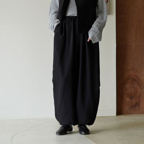 風をはらむようなゆったりとしたワイドシルエットが、美しいラインを添えるヘムパンツ。裾に施されたゴムが自然な丸みラインを生み出し、トップスをインしてもアウトしてもバランス良くまとまります。