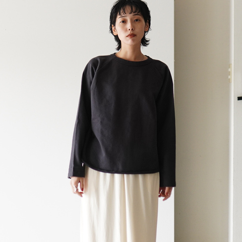 袖のリブを無くし、裾にラウンドカットを施すことで、カジュアルながらも女性らしいシルエットを実現。