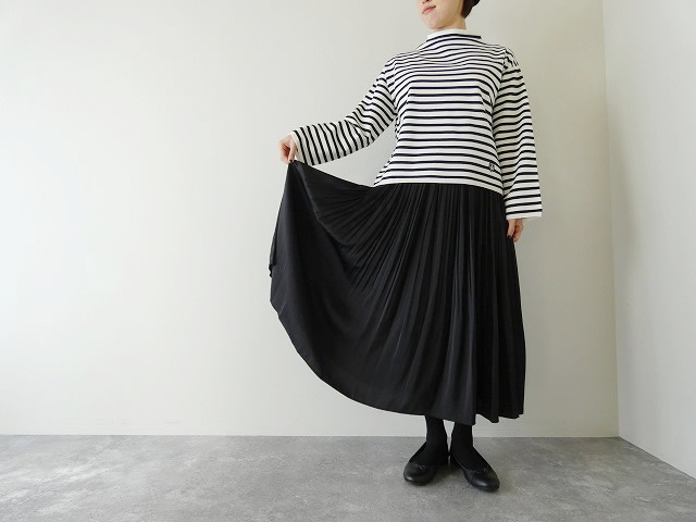 裾に向かってプリーツを消していて、ふんわりとしたシルエットと軽さが魅力的なスカート。ブラウスやジャケットと合わせて上品なコーディネートにも、スウェットとスニーカーと合わせてカジュアルにも◎です。