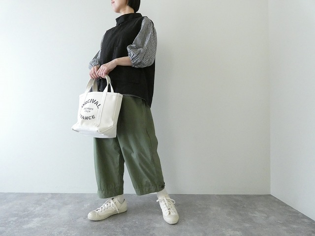 ドライな風合いがコーディネートに表情をプラスしてくるアイテム。ゆったりとしたサイジングで、身幅のあるブラウスなども合わせやすいです。