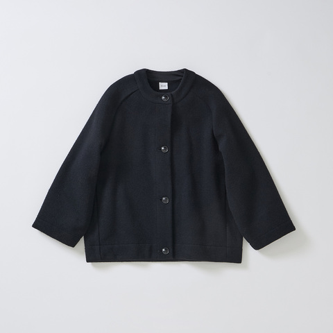 起毛感と膨らみのある、ソフトで軽いリサイクルウールのメルトン生地を使用した、ラグラン袖のショートコートです。