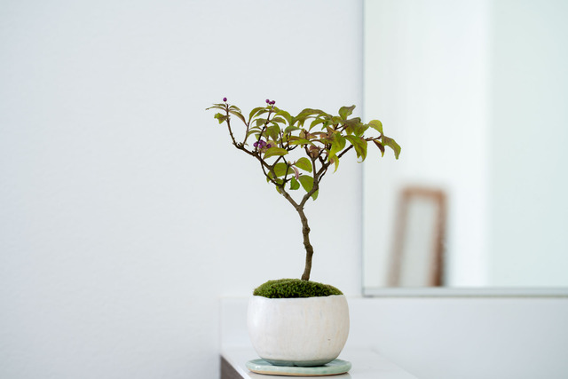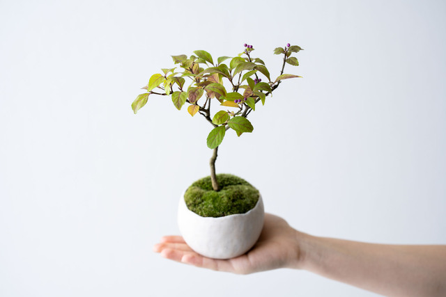 秋に紫色の実をつける姿が美しい樹木です。初夏に開花し、夏に結実した実は10~11月になると緑色から明るい紫色に熟していきます。そして落葉した後も実は枝先に残り続けるので、冬も侘び寂の風情ある姿を堪能できます。