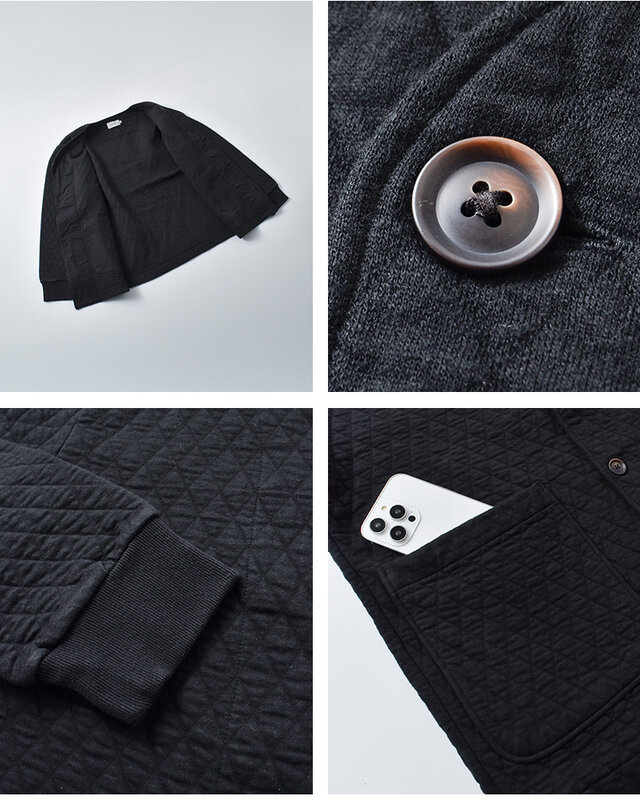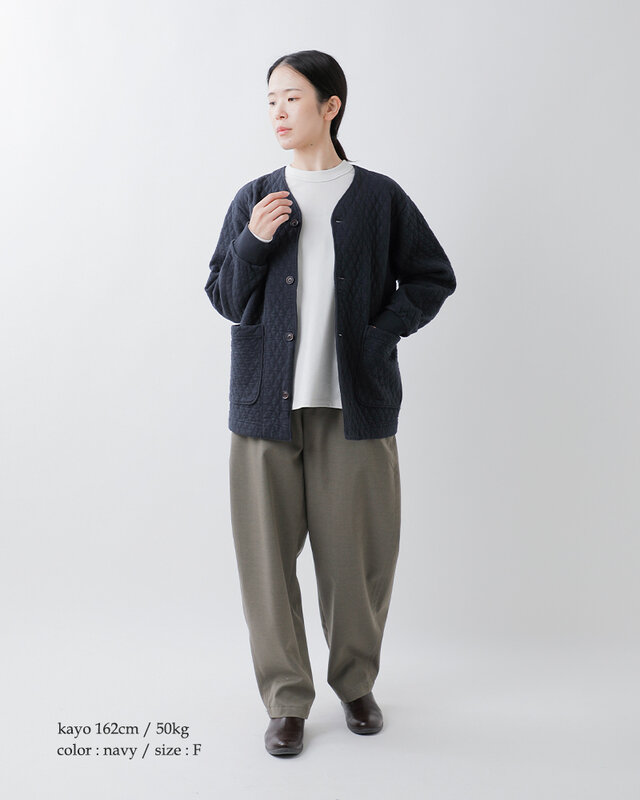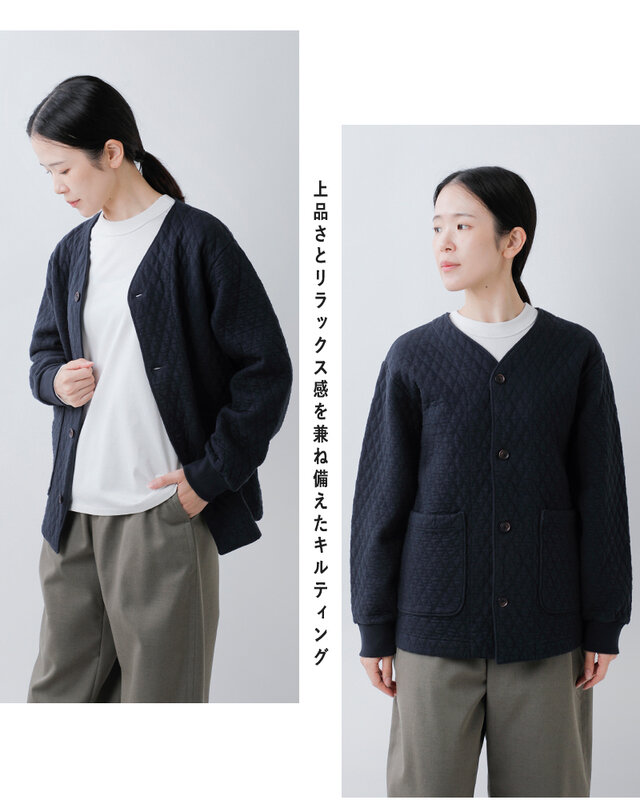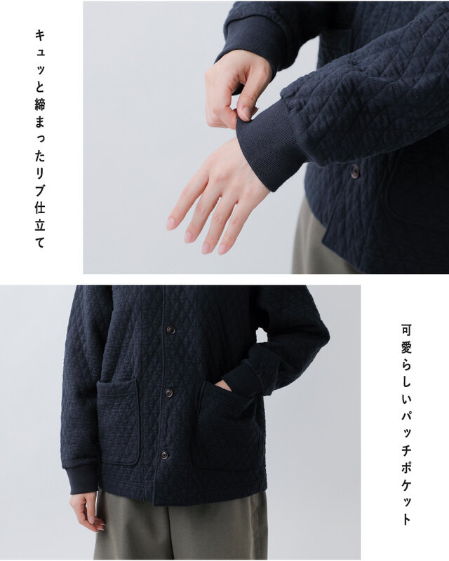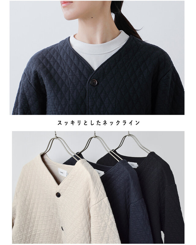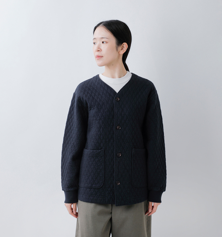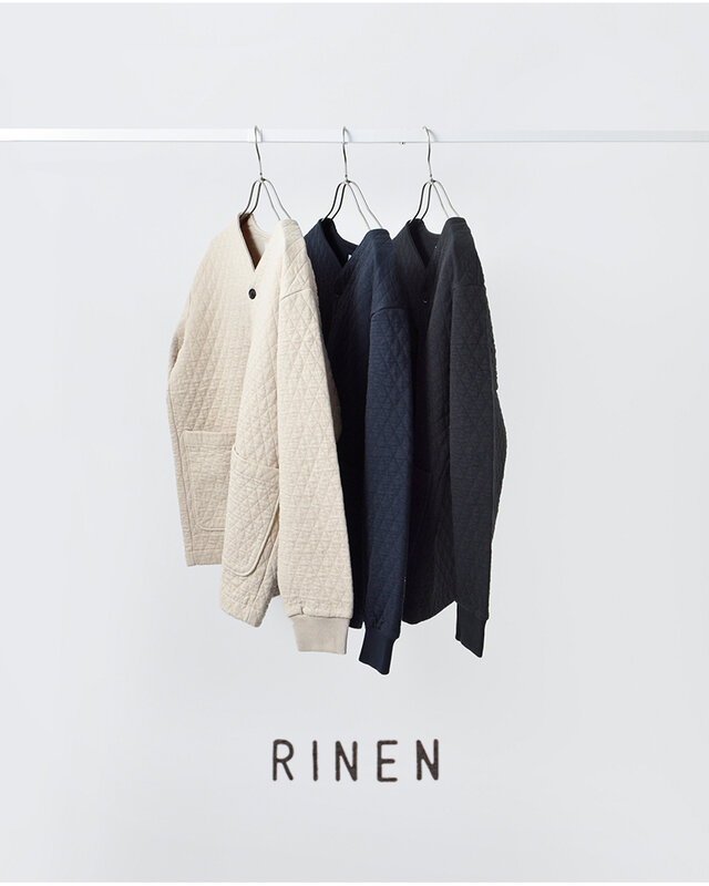RINEN|オーガニック天竺 ダイヤキルティング ノーカラー ジャケット r17612-kr