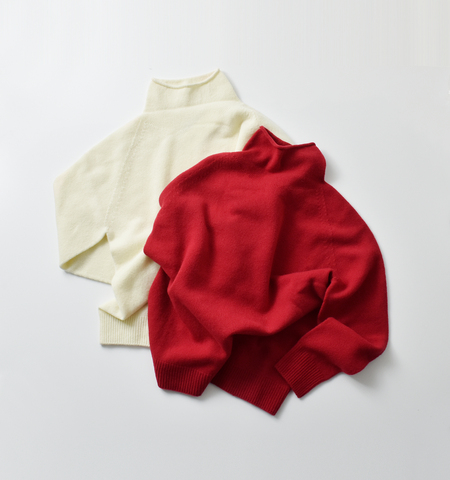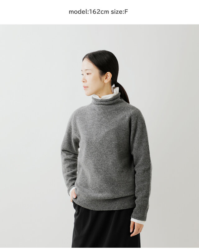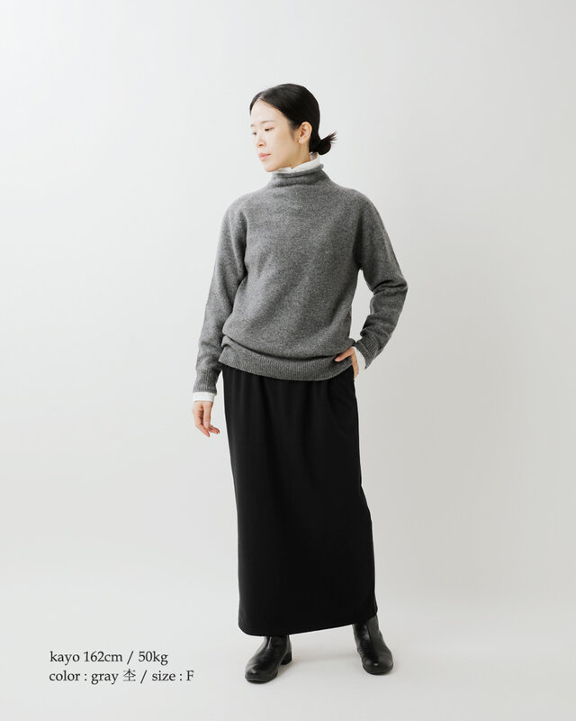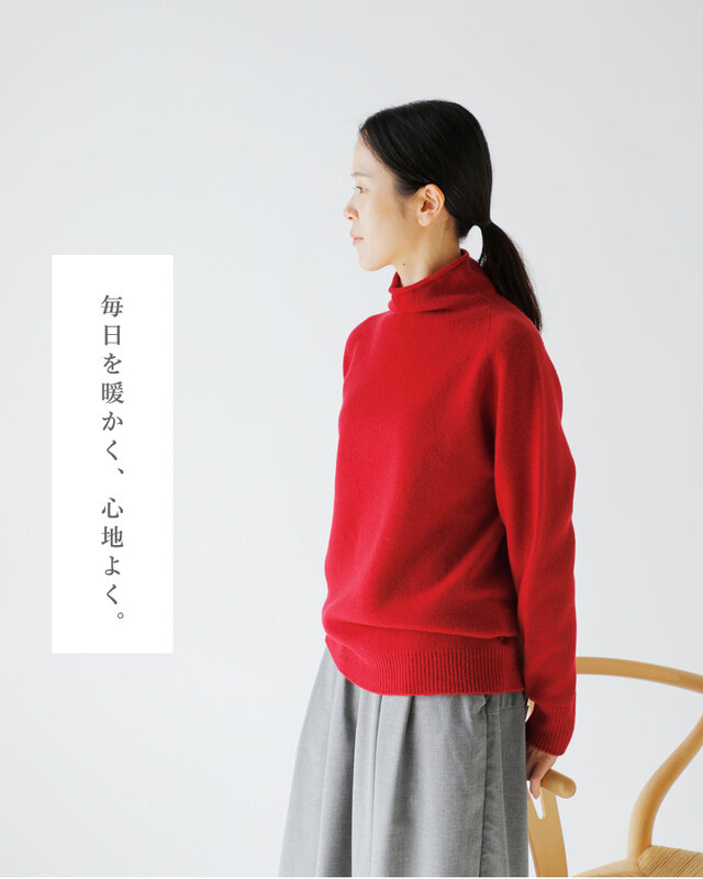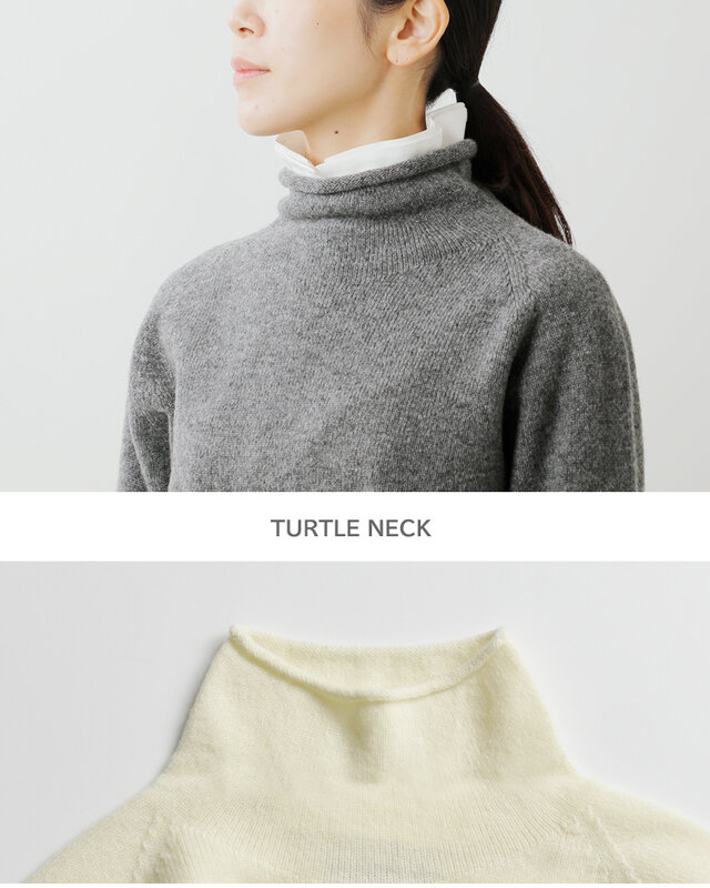 程よい高さで、折らずに使えるタートルネック。トップがくるんと丸まっており、可愛らしいです。