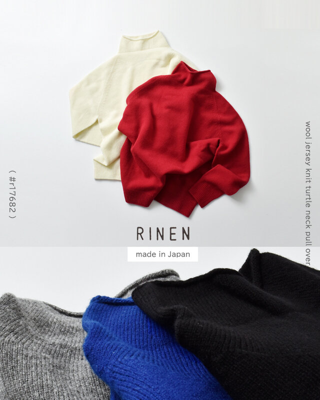 RINEN|ウール天竺編み タートルネック ニットセーター プルオーバー r17682-ms