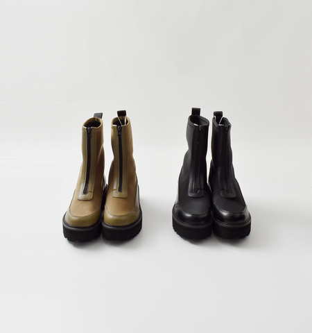 トレンドとミリタリーテイストを融合させモダンなルックスに仕上げた新型ブーツ『ZIP THICK TANK BOOTIE(ジップ シック タンク ブーティー)』。厚底のシックタンクソールが醸し出すミリタリーなムードに、ソフトで足に吸い付くようなネオプレンアッパー、そしてトレンドのセンタージップを配したスリムシルエットが、かつてないラグジュアリーな印象を与えます。
