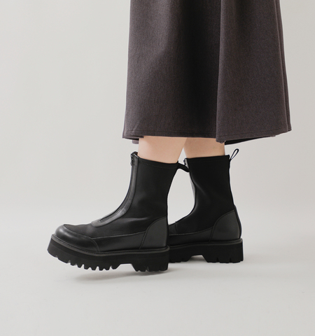 厚底センタージップブーツで足元をラグジュアリー&モードに。