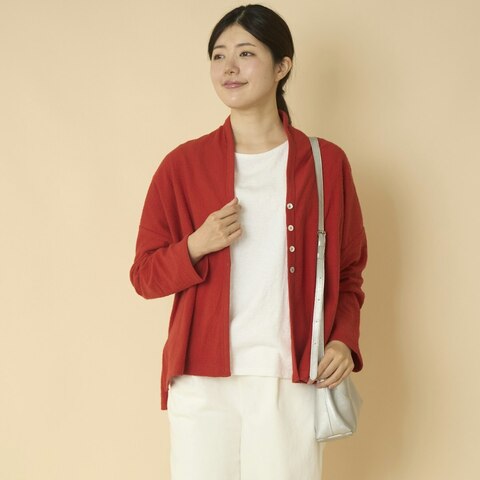 こちらのカーディガンは表面がボコボコとしたパイル生地を使用。生地選びにこだわりを持つブランドが手掛けているだけあって、シンプルな形でも、ほかとは違う雰囲気です。季節の変わり目などアウターに悩む時期にも、1枚着るだけでサマになるのも嬉しいところ。表は凹凸感のある生地ですが、裏側はなめらかなので、重ね着してももたつかないと思います。