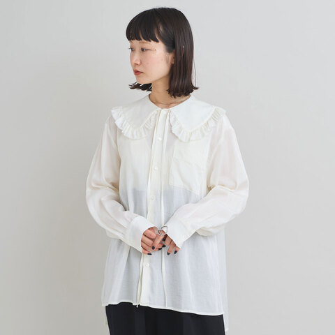 昨年のAWから毎シーズン展開しているフリルカラーブラウス。