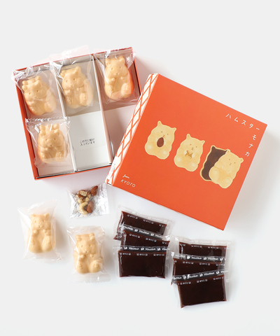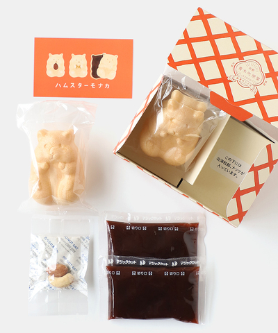 ハムスターをかたどった最中皮、小袋のあんこ、ナッツがセットになっています。