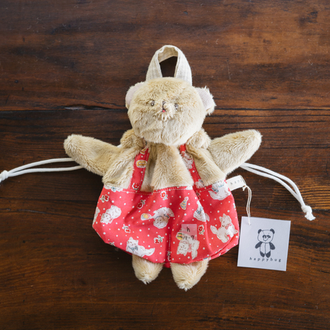 最初見た瞬間に一目惚れ!こんな世界があるのかとびっくりしたhappy bugさんのアイテム。毎回とっても好評で、今回も前回の人気アイテムや、わ〜!こんなの探していたー!という超絶キュートなアイテムまで幅広くお送りいただきました。え?ここにちょっとしたものいれられるんだ!と発見したり、以前お送りいただいた作品と同じ種類でも少しおしゃれが施してあったり。え〜どの動物にしよ〜というくらい全ての動物の表情がなんとも言えない可愛さだったり、布合わせがとにかく天才的だったりともう好みど真ん中!どうしようほしいものがいっぱいー!っていう嬉しい悲鳴の中、娘たちと一緒に準備を楽しませていただきました。巾着はレスキューの薬などを入れておいてすぐ飲めるようにしてもいいな〜とかこれはアクセサリーや鍵もだけど食べ物置いても良さそうだとか、ぬいぐるみなんでこんな可愛いんだ?などなどこの興奮が伝わると嬉しいです。