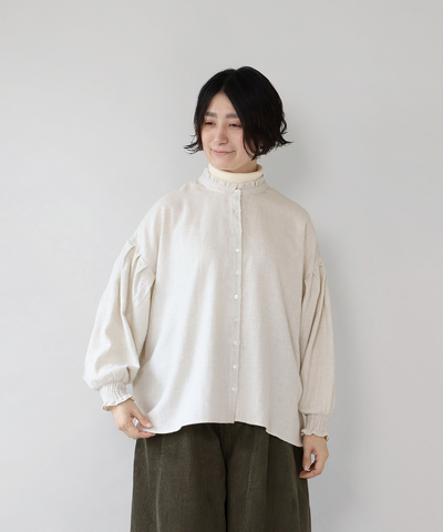TUTIE.|リネンコットンウールギンガムチェックタックブラウス 長袖シャツ