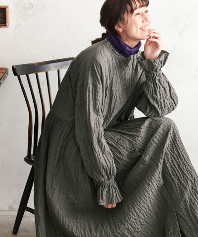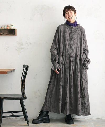 ina|反毛 ウール エターミン スタンドカラー ワンピース 254140