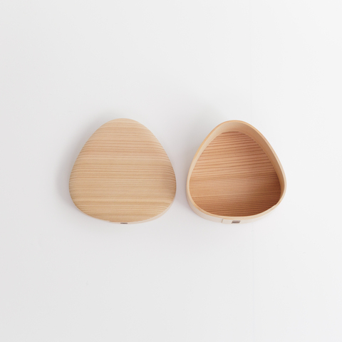 通常ではあり得ない三角の形を曲げわっぱで製作するには、色々な越えるべきハードルがあったとのことです。