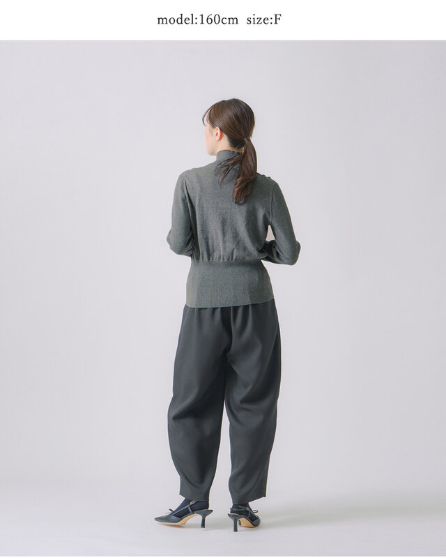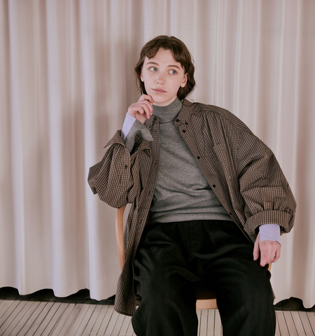 襟はハイネックデザインで、すっきりとしたお顔周りを演出します。
