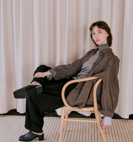 袖口のスリットからちらりと手指を見せて雰囲気たっぷりの着こなしに。