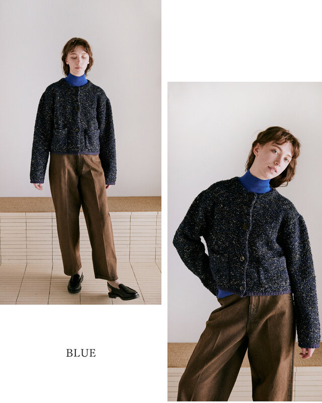 すらりと長いお袖の先にあるカラーブロックのあしらいで独特のバランスに。洗練された大人っぽいカラフルさをお楽しみいただけます。