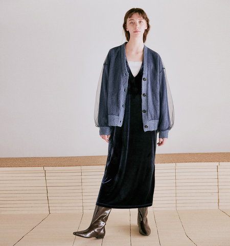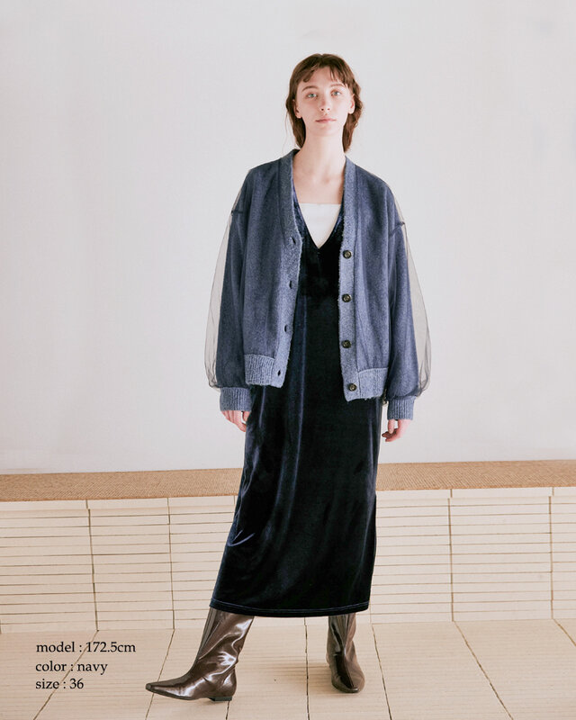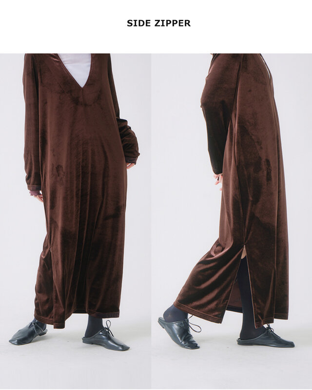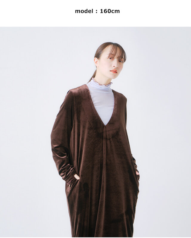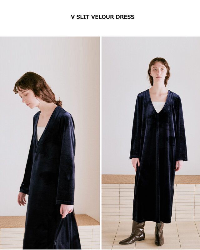 WHYTO.|Vネック スリット ベロア ドレス ワンピース “v slit velour dress” wht25fop4072-fn