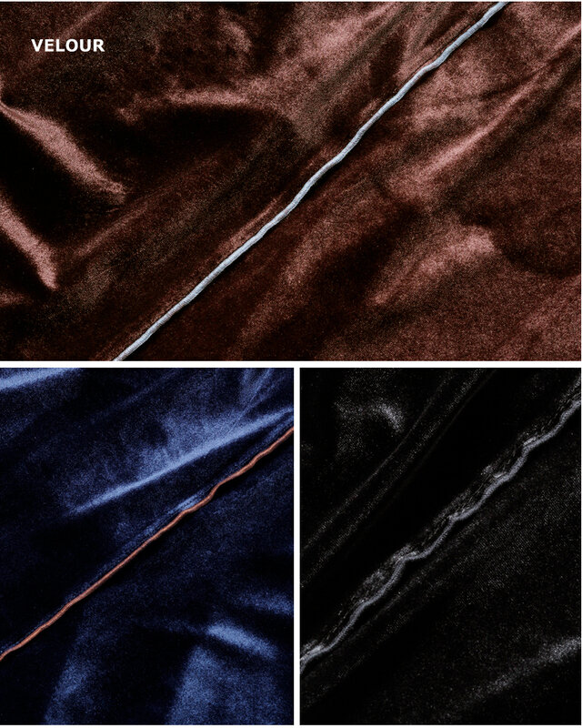独特の光沢感があり、高級感のある風合いが魅力のベロア素材。柔らかく心地よい手触りで、伸縮性もあるので着心地も◎。