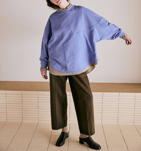 この商品はインディゴ染めを施しています。色落ちしますので、他の物と一緒に洗わないでください。洗濯後は、形を整えて直ちに干してください。手作業による平置きでの採寸の為、多少の誤差が出る場合がございます。予めご了承ください。