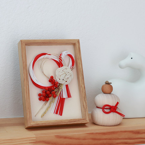 和なモチーフでも現代のおうちに馴染むのは、水引のデザインだけでなく、天然木のフレームを採用しているのも理由の一つ。