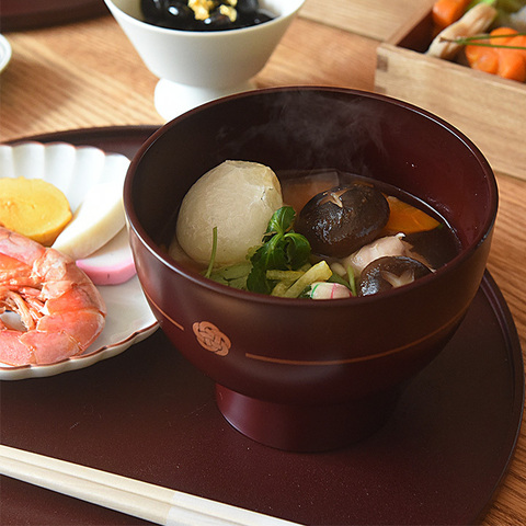 たっぷりサイズの合鹿椀は、具沢山のお雑煮やお味噌汁、年越しのお蕎麦、ごはんを多めに盛る丼などさまざまな盛り付けに活躍。特別感がありながら、日常使いもしやすい器です。