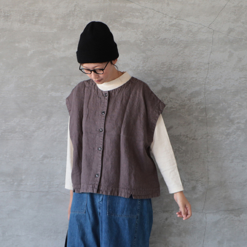 sabbatum|ブロード近江晒バックタックVネックベスト
