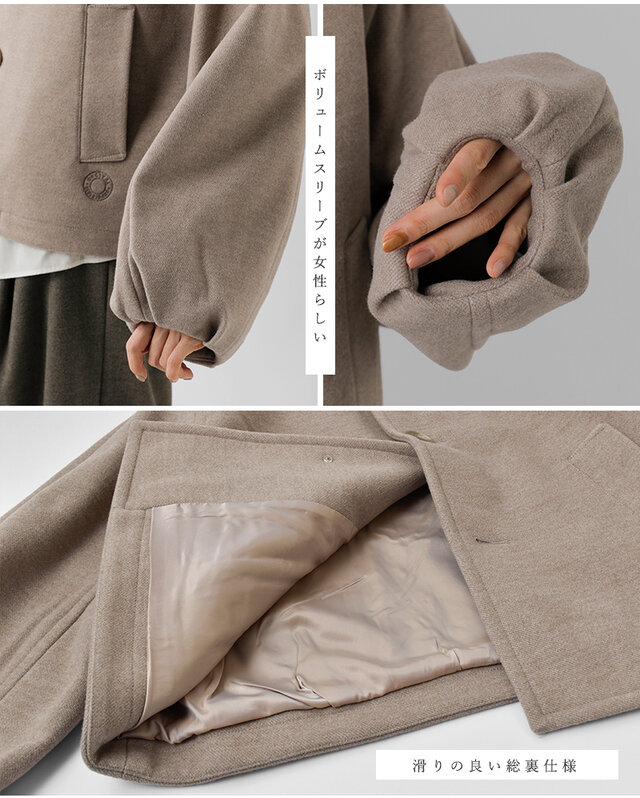 ・ふんわりと膨らんだボリューム袖が女性らしく、秋冬ならではの重厚感も演出してくれます。
