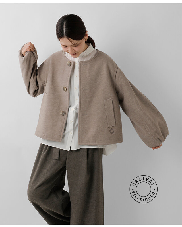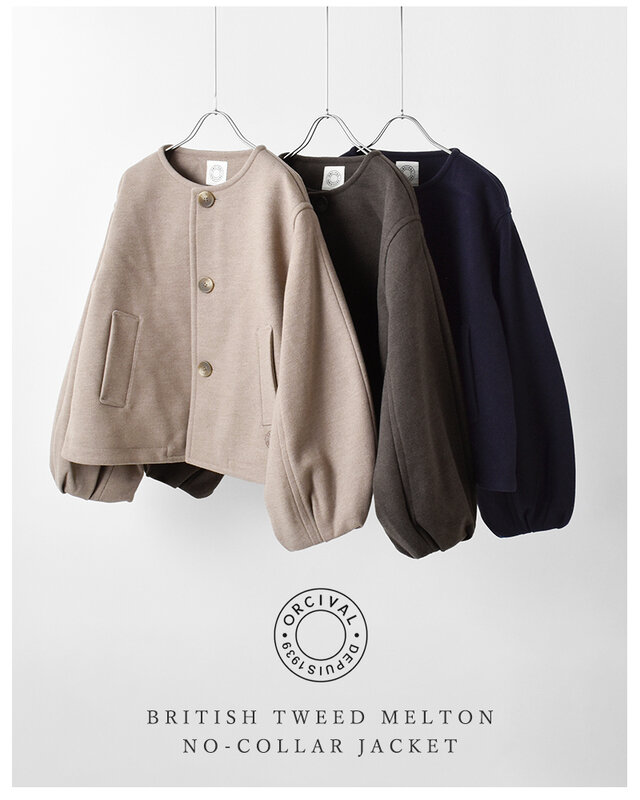 ORCIVAL(オーチバル・オーシバル)より、ブリティッシュツイード メルトン ノーカラー ジャケットのご紹介です。