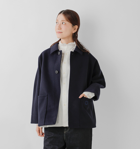 Agreable|ジャケット感覚で着られる ウールライク 袖タックショートコート