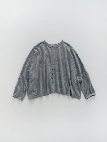 肩から身幅にかけてゆったりと作られた、ドルマンシルエットのワイドニットです。着用するとふわりと揺れるドレープが生まれ、柔らかな印象に。フロントには小さなボタンがたくさん並び、デザインポイントになっています。