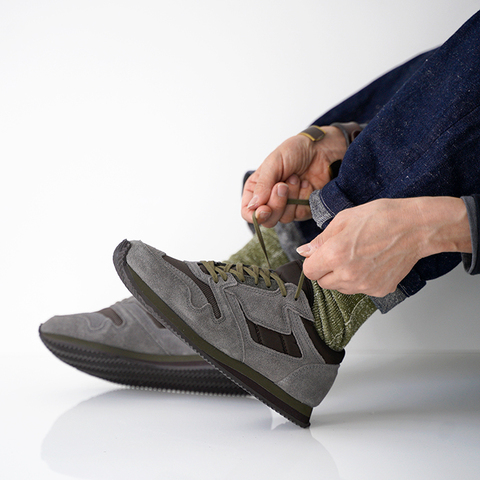 アッパー素材は上質なイタリア製スエードレザーとナイロンファブリックを用いたコンビネーション仕様。