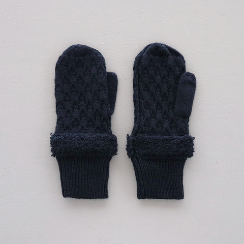 三角地模様とループ編みを組み合わせた表情豊かなミトンは細部までこだわりを感じられ、身に着けるだけで手元のさりげないアクセントになってくれますよ。使わないときもコンパクトになるので、バッグやポケットに入れてもかさばらないのが嬉しいポイントです◎