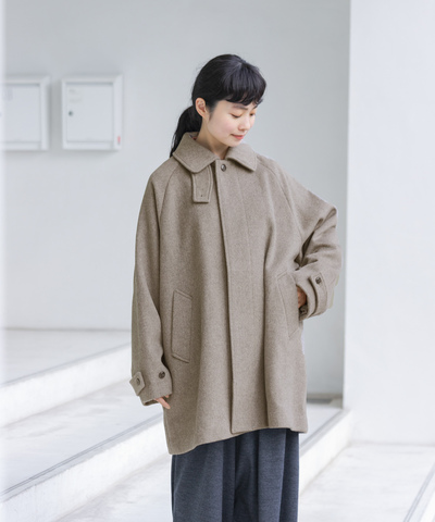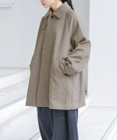 Agreable|ジャケット感覚で着られる ウールライク 袖タックショートコート