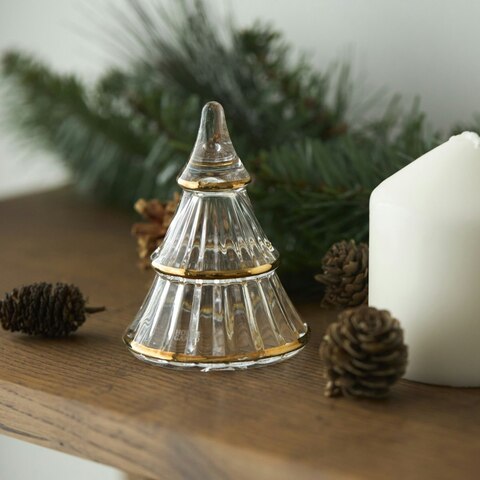 ホルムガードの「クリスマスツリー」は職人による、ガラス製のツリー。クラシックなデザインに加え、内部のウェーブによる光の屈折やゴールドのハンドペイティングは唯一無二の美しさです。複数のツリーを並べると森のように見え、幻想的な雰囲気に。シンプルな色使いだから、クリスマスだけでなく1年中飾ることもできますよ。