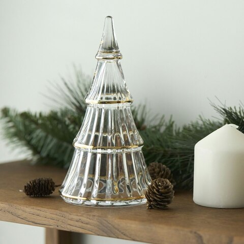 ホルムガードの「クリスマスツリー」は職人による、ガラス製のツリー。クラシックなデザインに加え、内部のウェーブによる光の屈折や手書きによるゴールドのラインは唯一無二の美しさです。複数のツリーを並べると森のように見え、幻想的な雰囲気に。シンプルな色使いだから、クリスマスだけでなく1年中飾ることもできますよ。